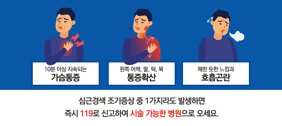 50대 이상에서는 통증을 명확히 느끼지 않는 조용한(무증상) 심근경색이 증가한다.
