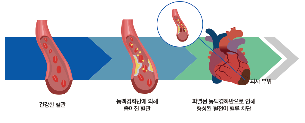 - 고혈압 → 관상동맥 압박, 혈관 손상