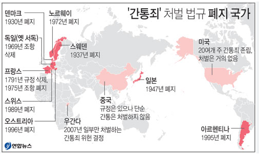 2015년 2월 26일 헌법재판소는 '간통죄'에 관해 위헌결정을 내려 형사상 간통죄는 폐지됐다. 헌법재판소가 위헌결정을 내린 결정적인 이유는 국민의 의식변화도 있었지만 국가가 국민의 성적자기결정권 등의 기본권을 지나치게 제한한다는 것이었다. 물론 간통은 형사상의 죄로서는 폐지됐지만 민사상으로는 존치하고 있어 간통을 했을 때, 가정파탄에 따른 비용을 지불하며, 윤리적인 책임까지 져야 한다.